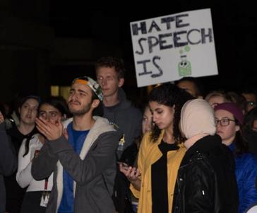 A mass student protest against an Islamophobic speaker is organized, featuring speeches and performances from allied student groups.