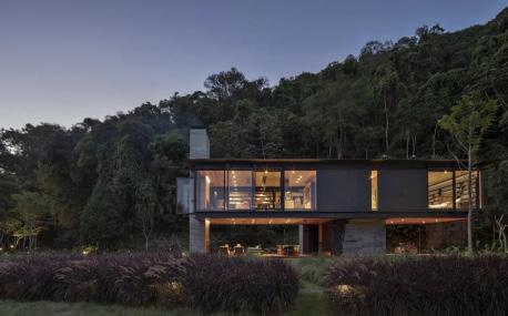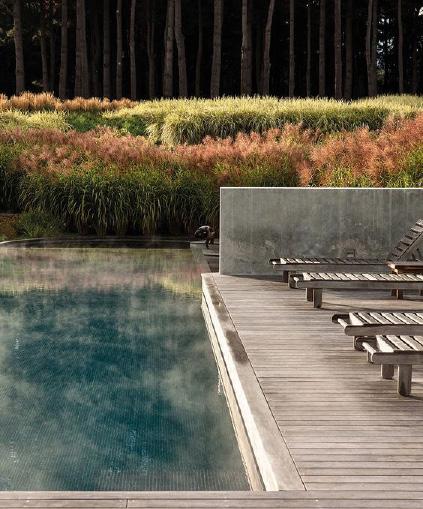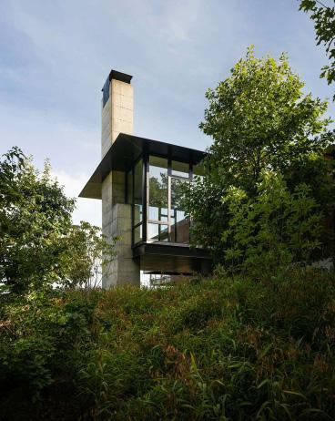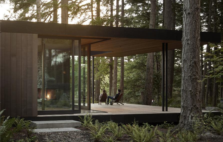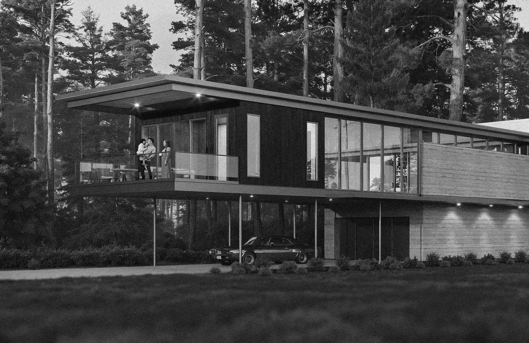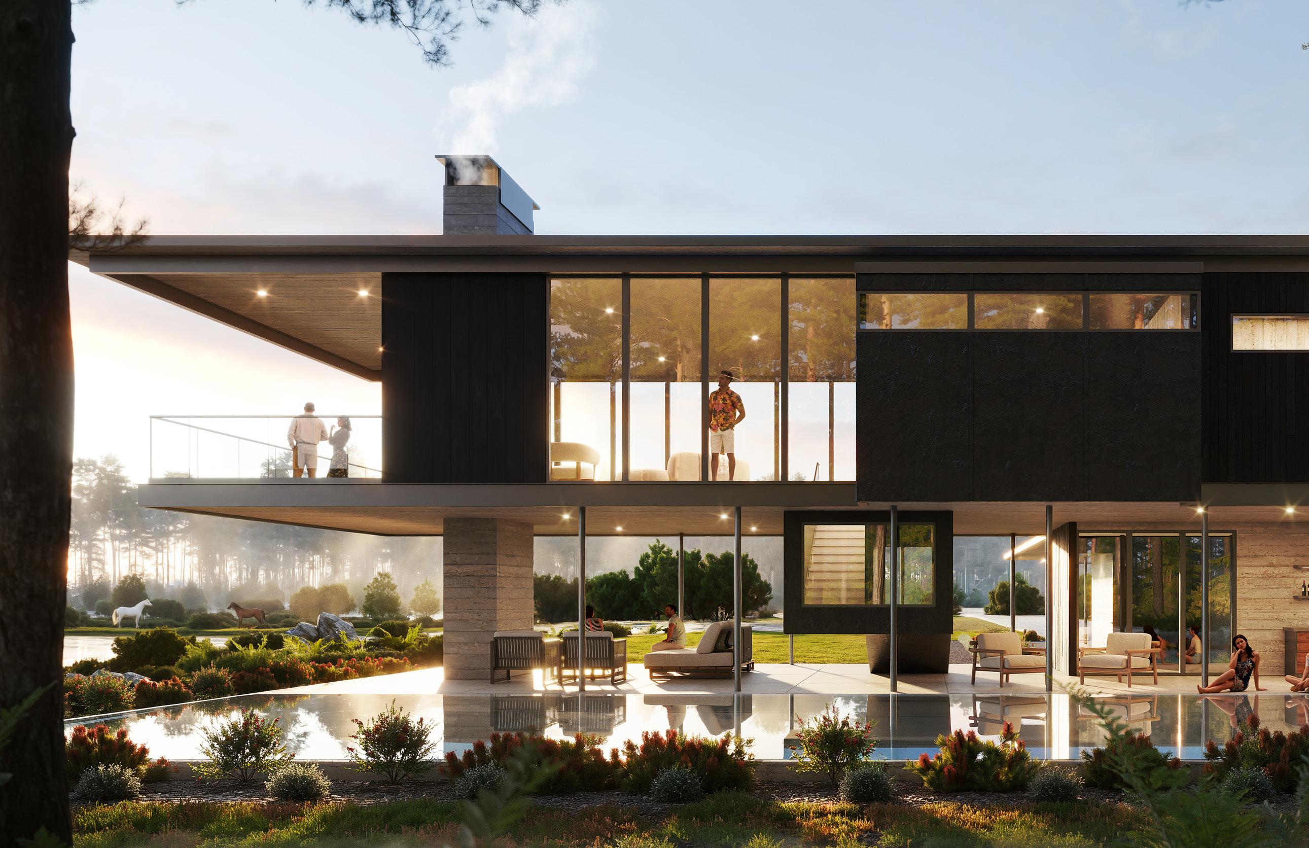 Perched above the forest, Canopy offers an elevated, private living experience immersed in light and nature. Designed for Kingbird’s wooded homesite, it minimizes its footprint to preserve the land’s beauty. The lower level includes a garage, mudroom, entry, elevator, and a tranquil outdoor space with a pool, while the main living areas rise into the treetops.
