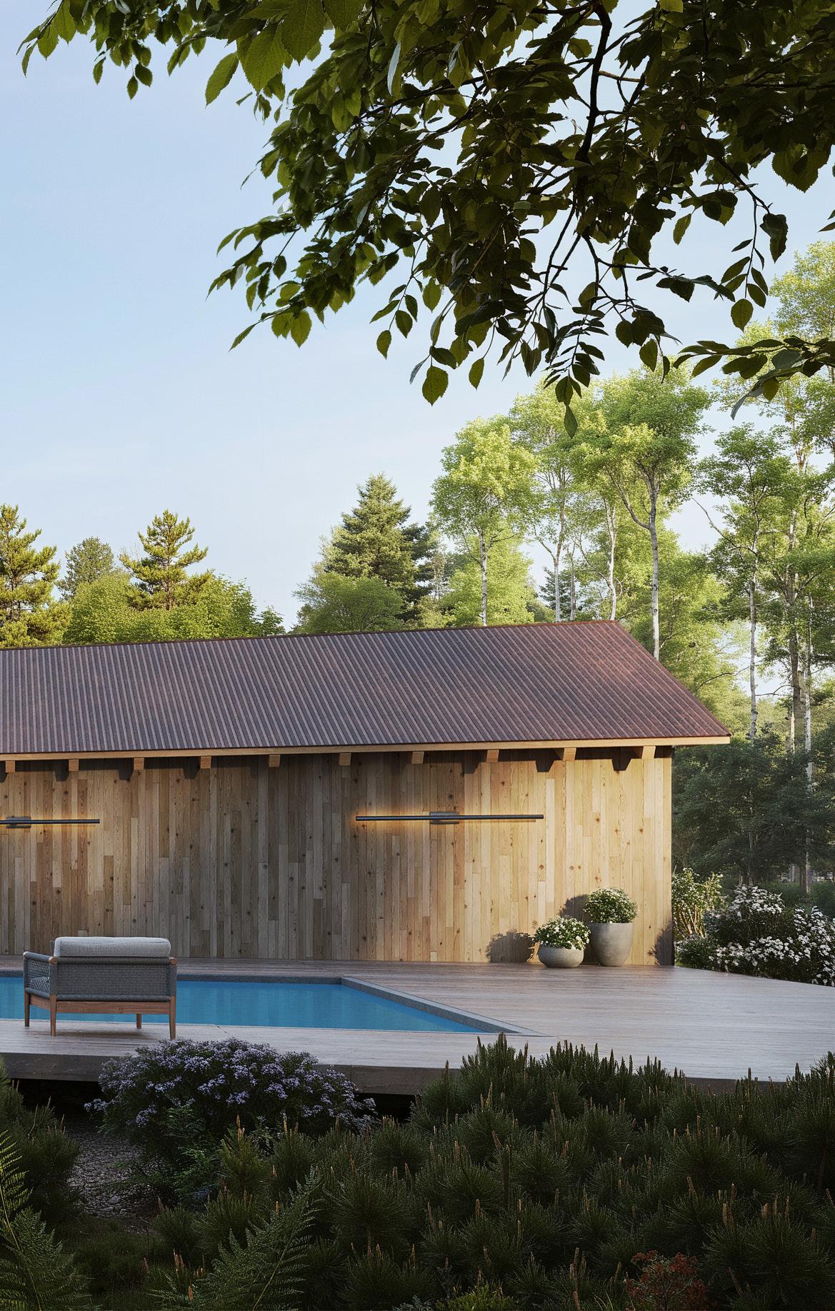 Homestead blends traditional ranch-style living with modern craftsmanship, honoring the land and its heritage. Its twin gabled structures, covered in vertical cedar and rusted metal roofing, draw from agrarian roots while incorporating refined, contemporary details. Exposed timber and natural textures create a warm, enduring feel, reflecting Kingbird’s spirit.
