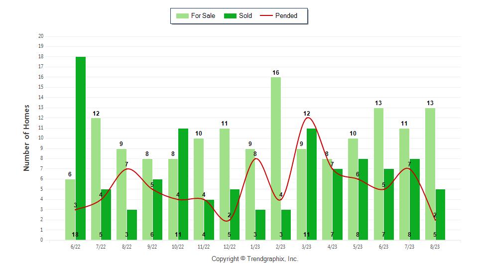 August property sales were 5, up 66.7% from 3 in August of 2022 and 37.5% lower than the 8 sales last month.