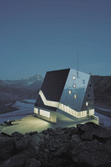 Ez a szlovén OFIS Arhitekti stúdió által tervezett apró, alumíniummal burkolt menedékház az olaszszlovén határon levő hegyek peremén magasodik. Úgy tervezték ezt az apró 9,7 négyzetméteres kabint, hogy ellenálljon a szélsőséges időjárási körülményeknek