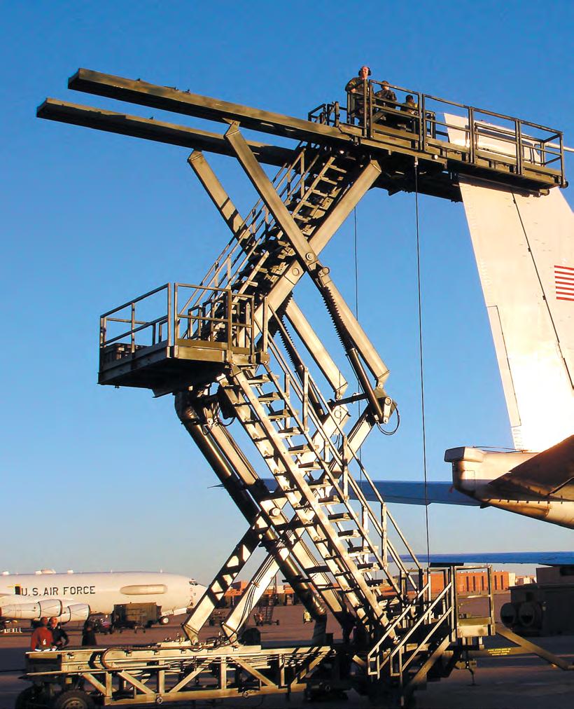 T-REX (Tail Rotodome Extension) is taking the E-3 Maintenance personnel to higher places. Based upon the idea of combining several types of access stands into one stand which can be deployable in under two hours. Carbis Solutions has developed the first motorized stair accessible modular stand of its kind. T-REX.