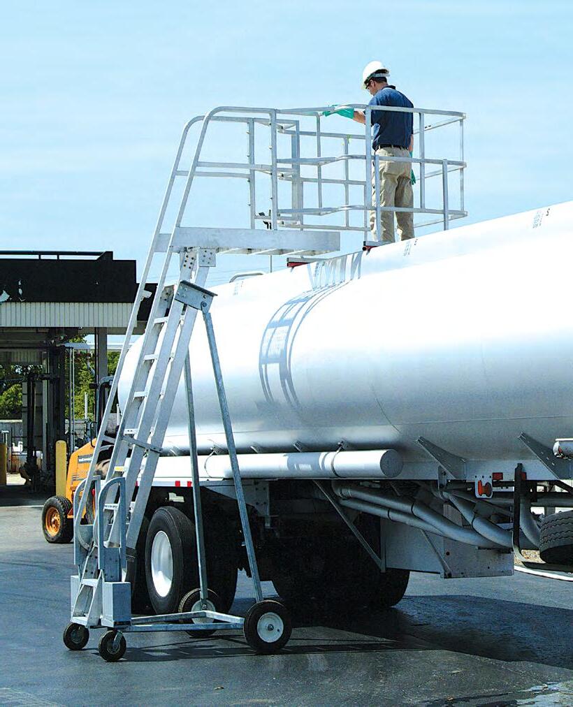 The ladders on a liquid rail car are extremely difficult to climb, especially when burdened by tools or inclement weather.