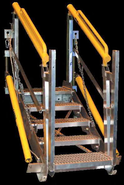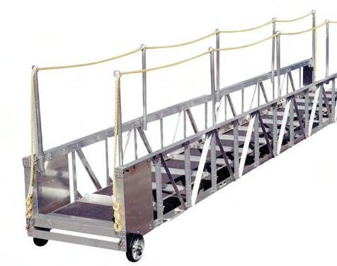 500 lb. load capacity. Access from both sides. Approved for use on aircraft meeting and/or exceeding all OSHA and ANSI codes and standards. Lightweight yet durable aluminium construction with casters for added mobility. Drain holes on the platform and treads prevent pooling liquids.