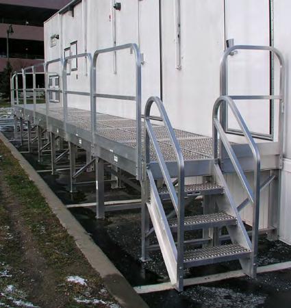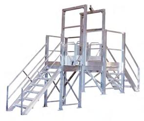 Stair towers can provide excellent fall prevention with mid rails, top rails and narrow gaps between steps.