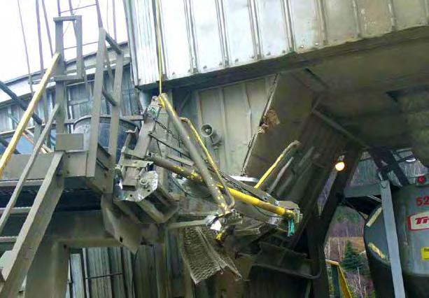 • Due to varying crash box dimensions (length & width), there is a potential for a horizontal gap larger than 12” on the sides of the cage. Furthermore, there is also potential for the cage to land over the top of the railcar dome depending on the configuration causing a misalignment with railcar access opening and therefore interfering with hatches inside the crash box.