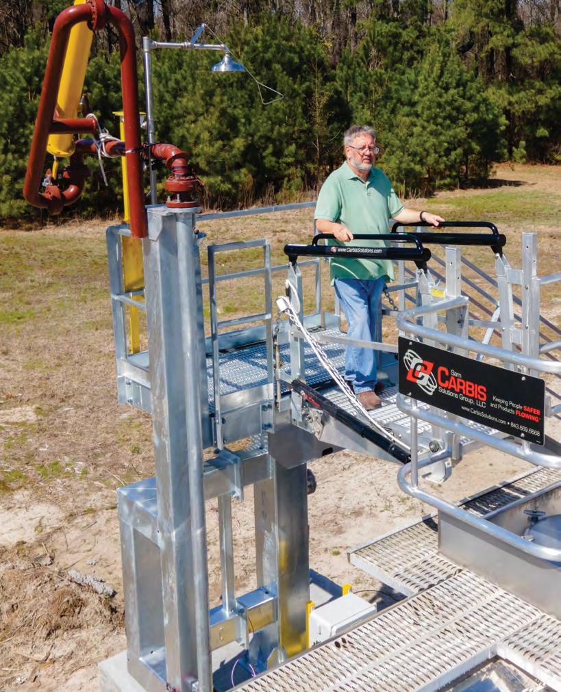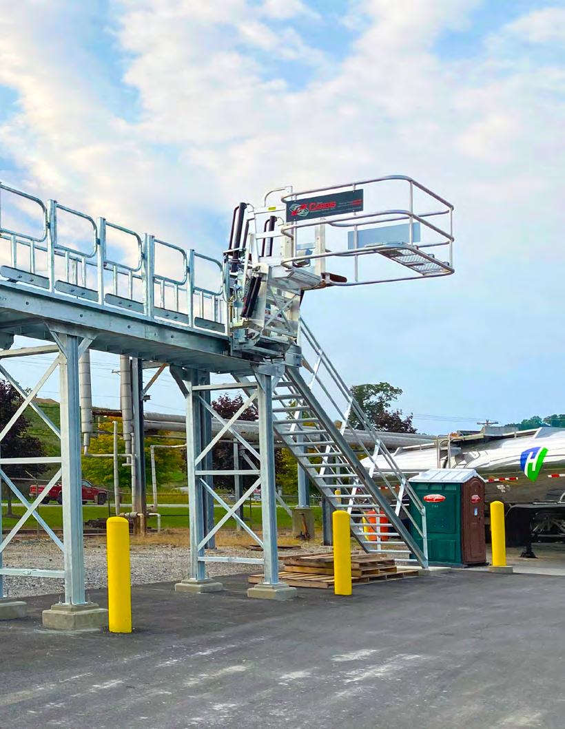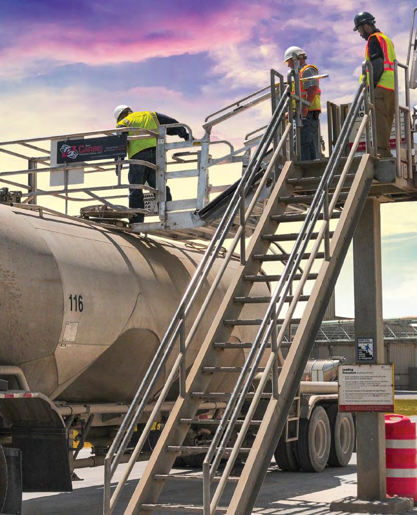What Carbis Solutions Supplied: Design engineering for the entire system including, an access integrated pipe rack, fall protection, spill containment, loading hoses, etc. We also coordinated the installation and taught an operator safety training course.