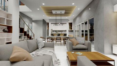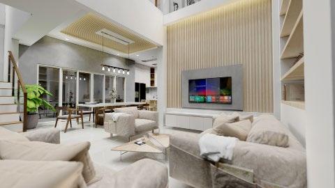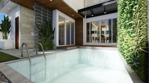 Interior design (from left to right) : living area; dining - kitchen; and pool.
