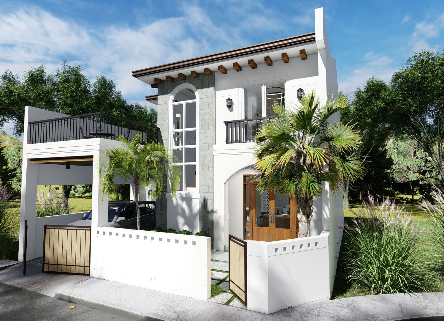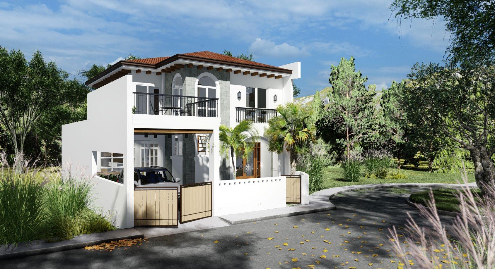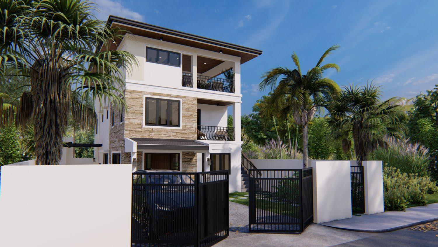 A modernized spanish revival style residential creating a blend of style and comfort for modern living; achieved through proposed building treatments such as stucco finish on exterior walls, exposed faux wood corbels, complimented with steel railings, and matched with earth toned shades.