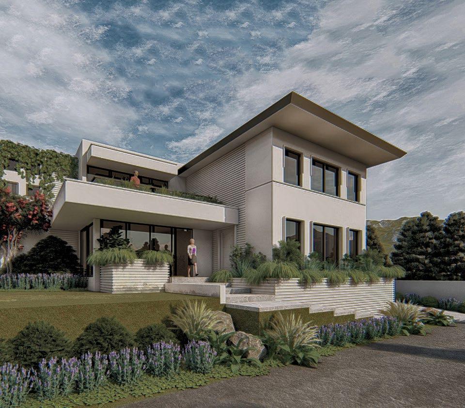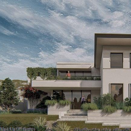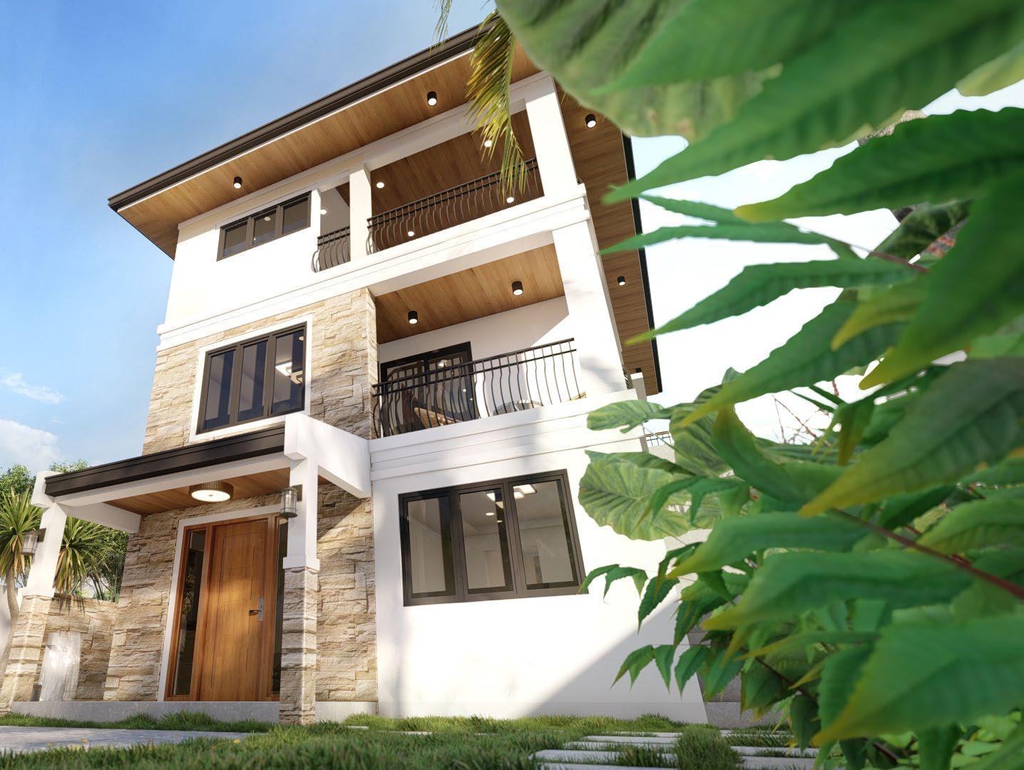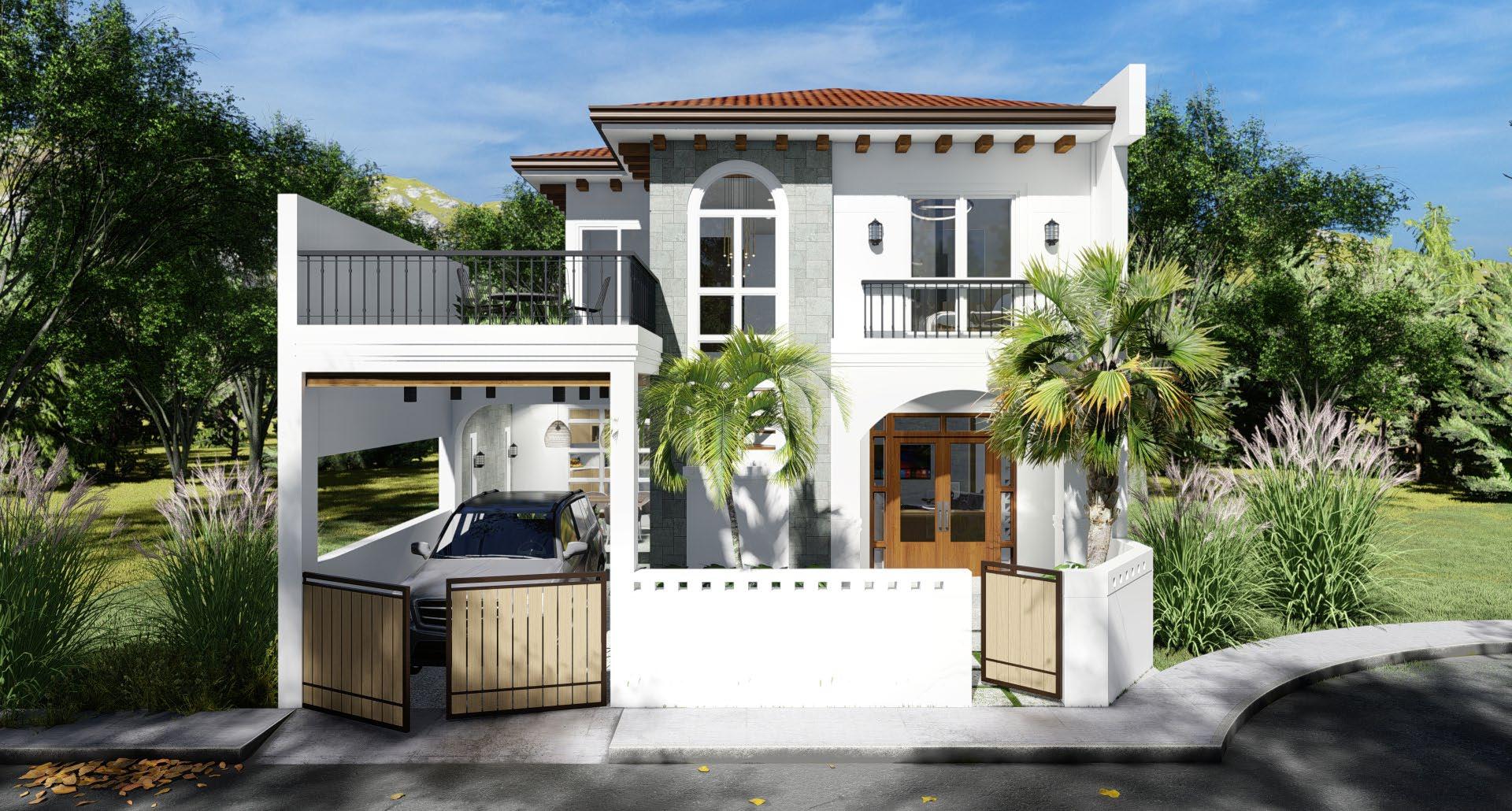 A modernized spanish revival style residential creating a blend of style and comfort for modern living; achieved through proposed building treatments such as stucco finish on exterior walls, exposed faux wood corbels, complimented with steel railings, and matched with earth toned shades.