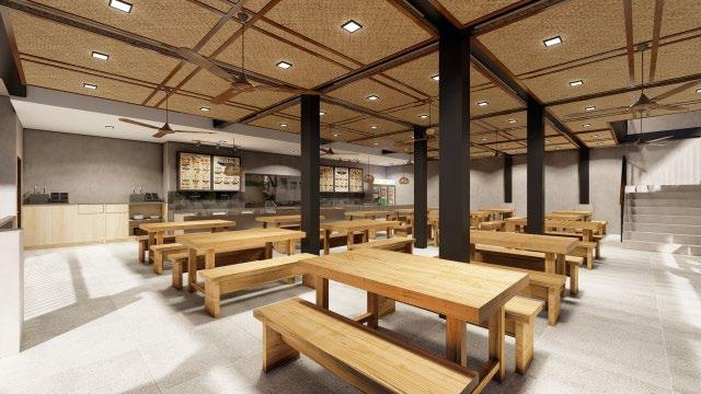 Two-storey restaurant serving staple Filipino dishes - leveling up the comfort and aesthetic of a local carinderia through modern industrial style with incorporation of vernacular materials, spacious circulation, and ample ventilation.