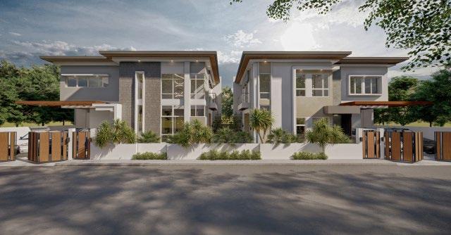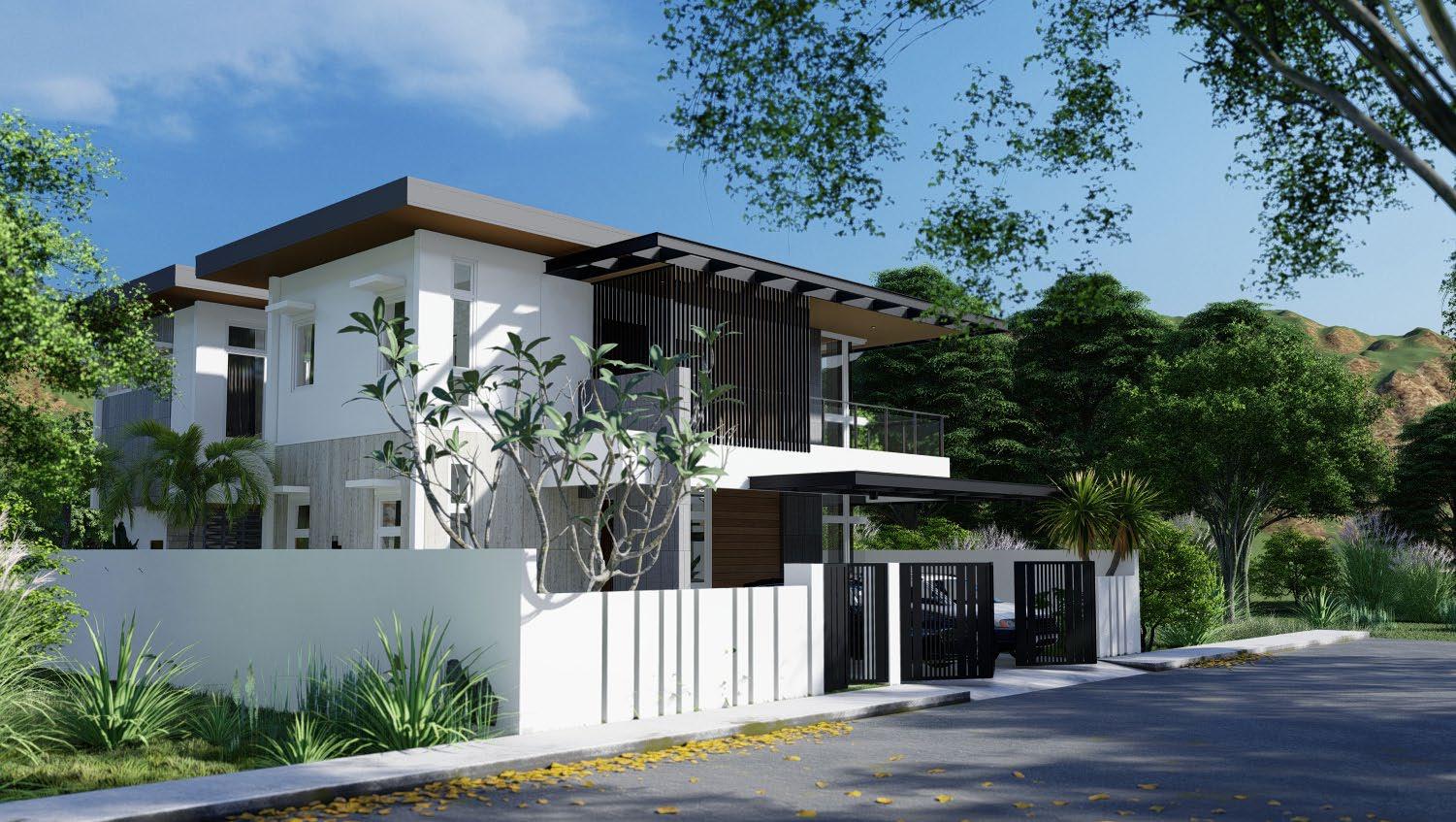 Unidentical twin - two storey residentials with contemporary design motif and lushed with tropical foliage. The property will house two immediate families, while designed to give both families their own privacies, social connection was still maintained and encouraged through a shared lanai area and lap pool in between the houses.