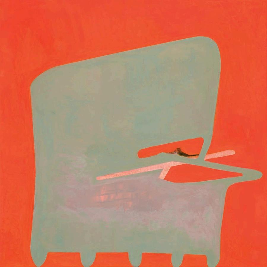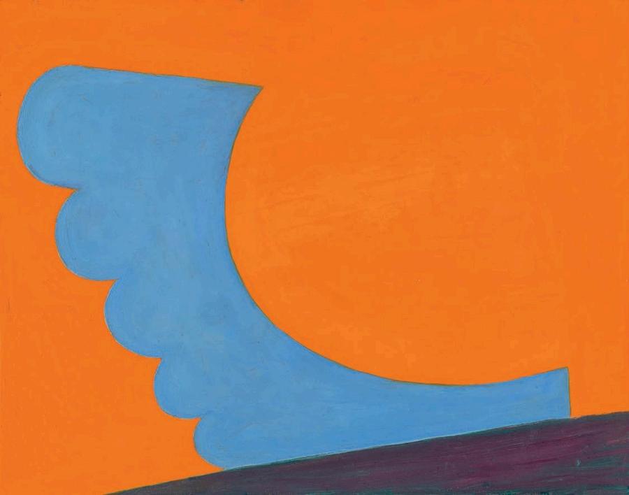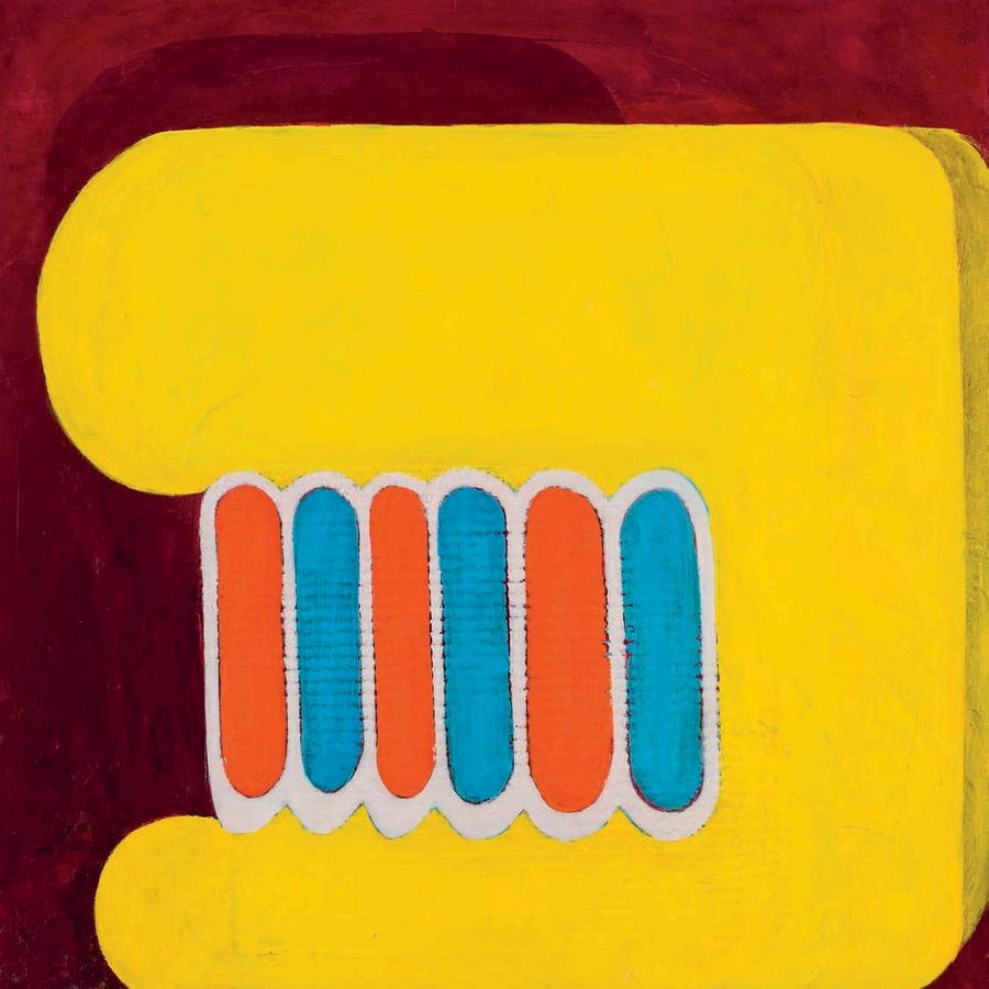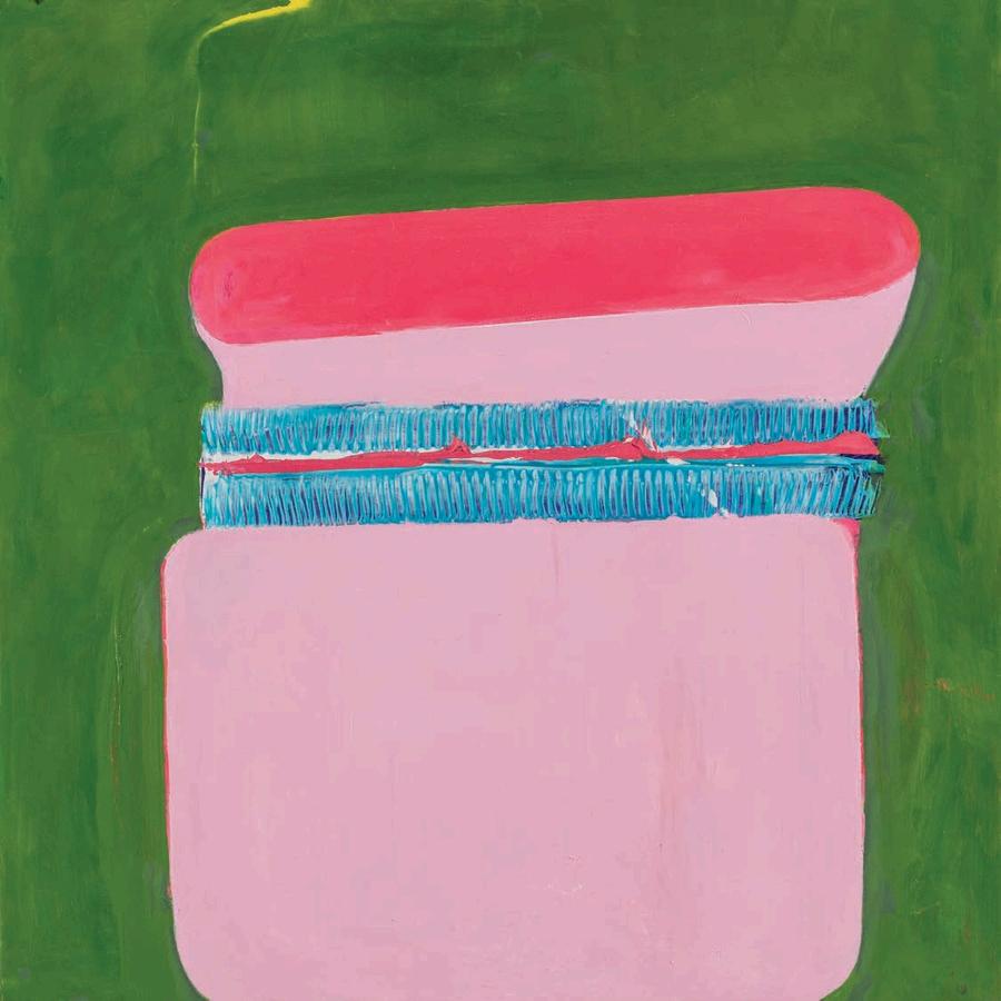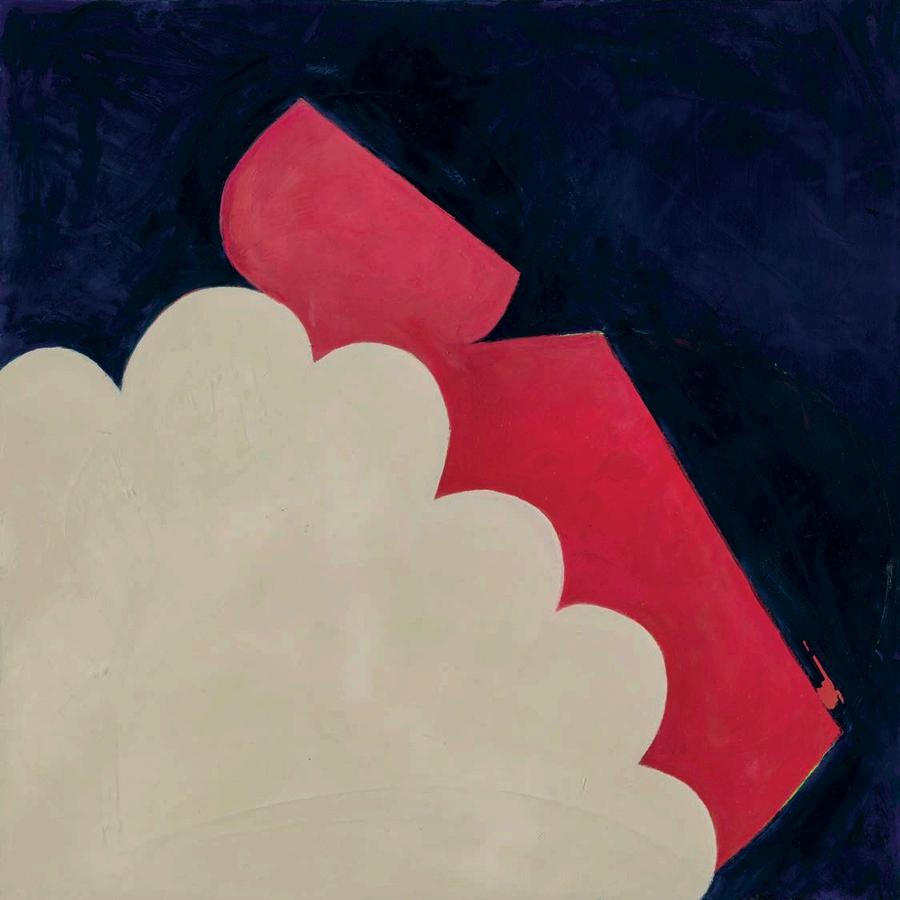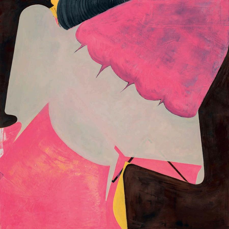offset by a bright yellow drop shadow that cuts out the surrounding negat ve space. Forgetting the Self contains a d rty magenta biomorphic head-like form propped up by a phthalo blue grooved neck, framed by a white negative space It is strange mysterious and highly evocat ve A l three paint ngs emphasize their history Successive ayers of paint create muted passages, which at times, expose transparent underpaintings that act as visual breadcrumbs wa king the viewer through labor, time, and decision mak ng.