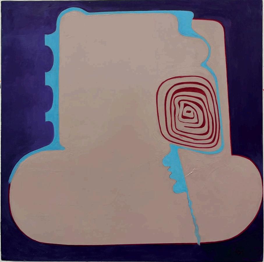 Shalom completed her MFA at the Art Inst tute n San Francisco as a photographer, and for years lugged around a Hasselb ad, which has a 2 ¼ by 2 ¼ frame. Naturally, the artist fel n love with the square. When she shifted to painting, there was a bui t in familiarity with the square format and all of its attendant baggage. Shalom is a self-descr bed Modernist painter. She is not however interested in the concerns of Non-Objective abstraction, but instead leans into referentiality. The artist has also long ma ntained a Zen Buddhist practice, which places considerable emphasis on change, flexibility, direct experience and rejects a f xed approach to th ngs; qualities readily apparent in her paint ngs. J.J. Murphy has previously written about the formal relationship between the late Thomas Nozkowski and Fran Shalom, as they both share a penchant for modest easel-sized work and cartoon-like formal invention. Another likely painterly bedfellow is Brenda Goodman. Both artists have been described as painters painters as each employs transparent veils of co or that alternate with sharp, linear geometr c form, and materially dense passages to create deeply psycholog cal worlds Yet whi e the materiality of Goodman s pa ntings evoke psycholog cal grief and bodily vulnerability; Shalom’s paintings are decidedly character-like, and her forms are biomorphic as opposed to geometric. Nearly a l of her works read as abstract self-portra ts portraying one s changing attitude and identity within a complex emot onal spectrum.
