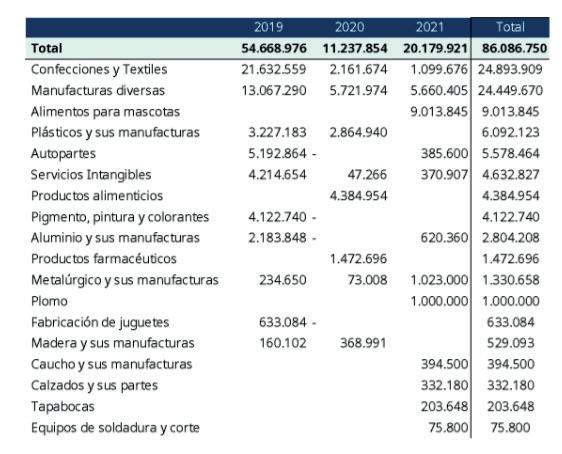 La balanza comercial acumuló déficit de USD 586,3 millones hasta agosto del 2022. Las exportaciones, que ex perimentaron una variación interanual de -1,6% en su acumulado, alcanzaron los USD 9.352 millones; mientras que las importaciones, con un incremento interanual de 25,5%, alcanzaron los USD 9.938,7 millones. En las importa ciones, China fue el principal origen, con 28% de participación; seguida en importancia por Brasil, con 23,3%, y en tercer lugar Argentina, con 8,4%.