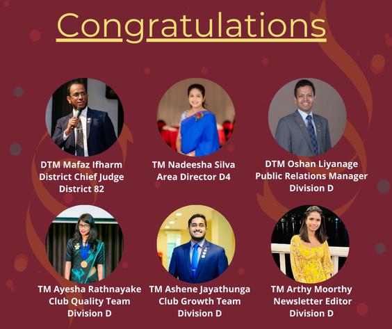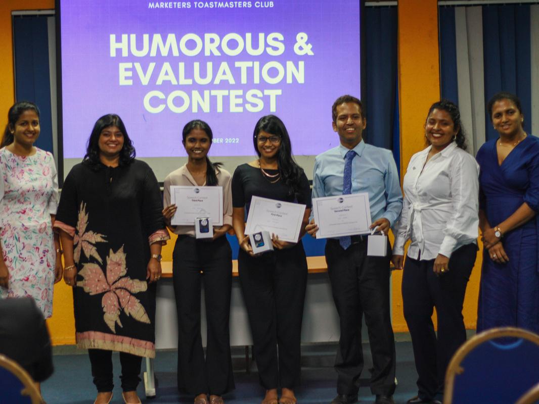 TheclubcontestforHumorousandEvaluations wereheldonthe6thofOctober.Thisisthefirst contestthathappenedduringthetermofthenew executivecommittee.Thehumorouscontesthad6 excellentspeakersthatrockedthevenuewith laughterfromtheaudience.Thecontest concludedwithTMNishanDeSilvaplacingfirst, DTMOshanLiyanageplacingsecondandTM YashodharaHemachandraplacingthird.The evaluationcontestalsohad6amazingindividuals thatwereanalyticalandcompassionatewhen theydeliveredtheirevaluationsofthetest speaker.ThiscontestconcludedwithTMAyesha Ratnayakeplacingfirst,DTMOshanLiyanage placingsecondandTMArthyMoorthyplacing third.