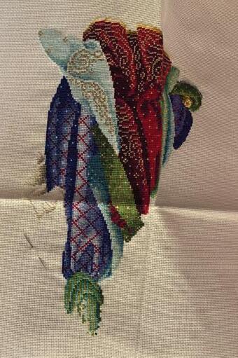Maeve’s visual crea ons are not limited to pain ng. She uses pa erns to create intricate colorful needle work designs.