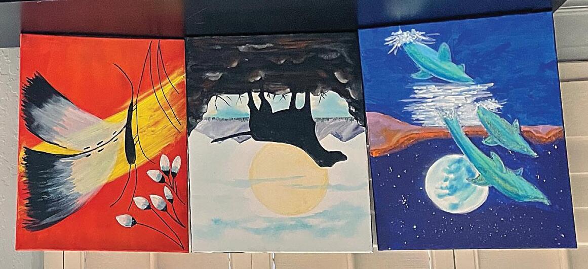 Maeve paints a variety of subjects, but many of her pain ngs feature nature and animals. Most of the me she paints on canvas with acrylic paint, but occasionally challenges herself with watercolors. She finds inspira on on Pinterest, through photos and with her imagina on.