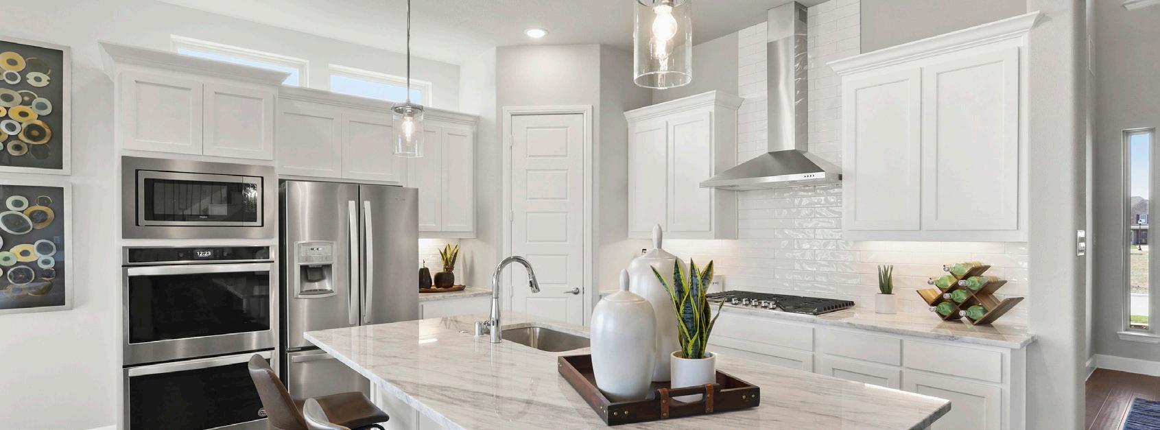 • Custom cabinets and 36” uppers with modern crown