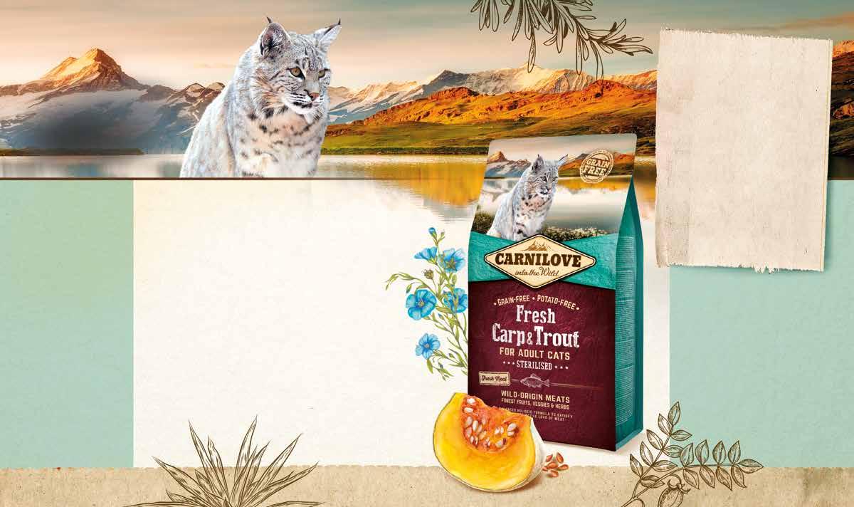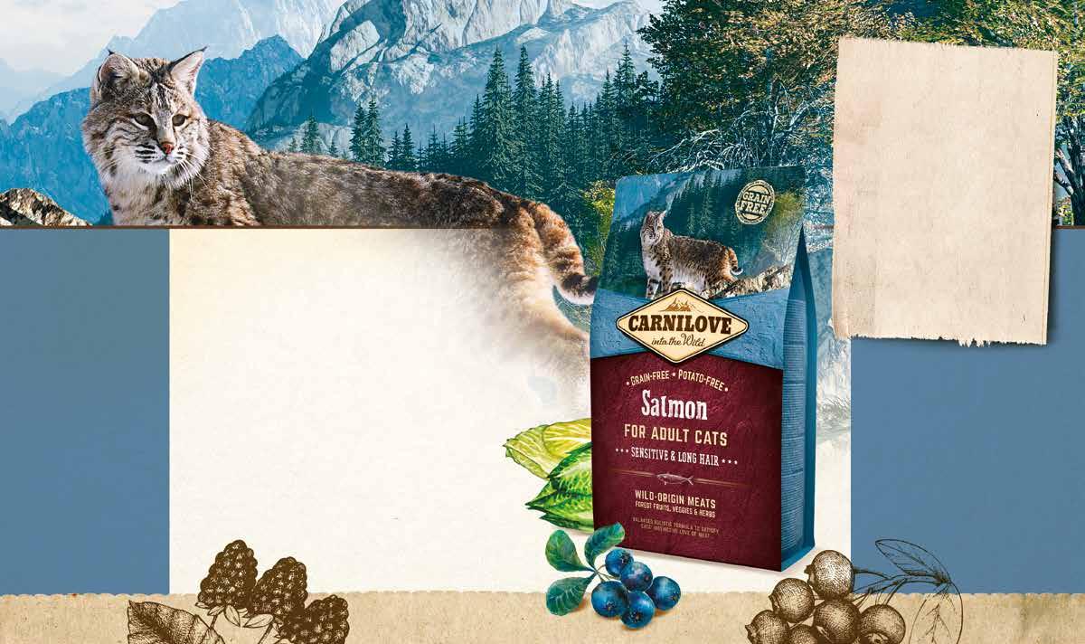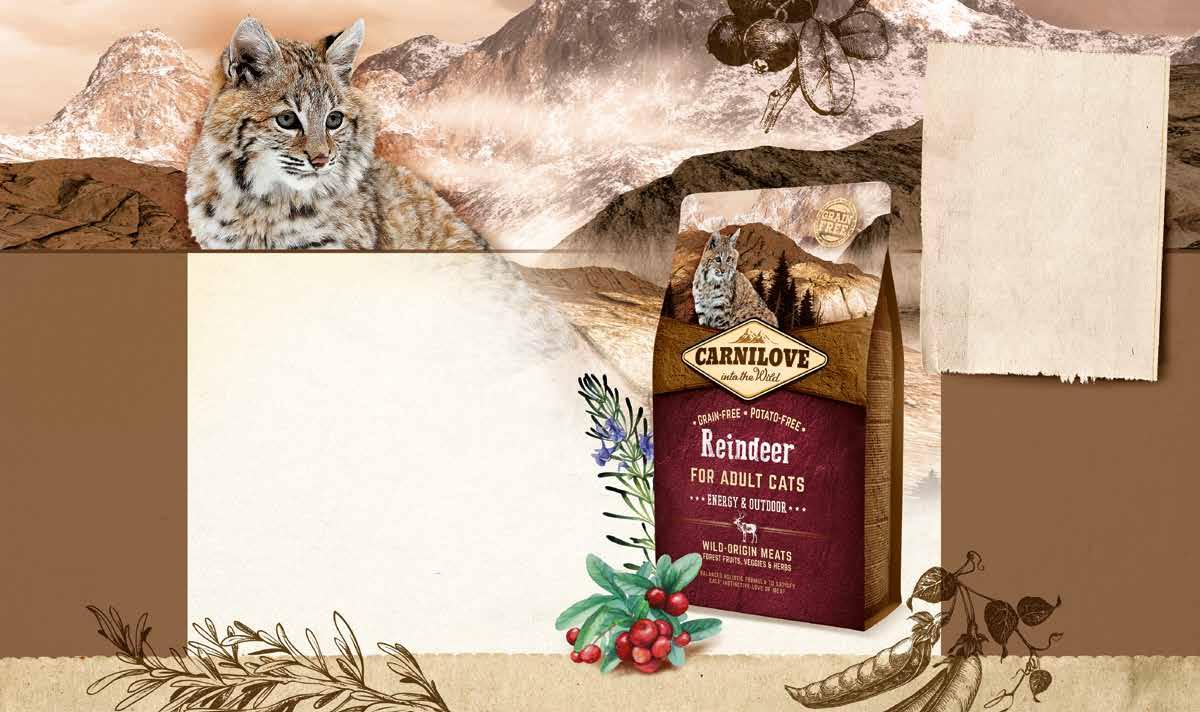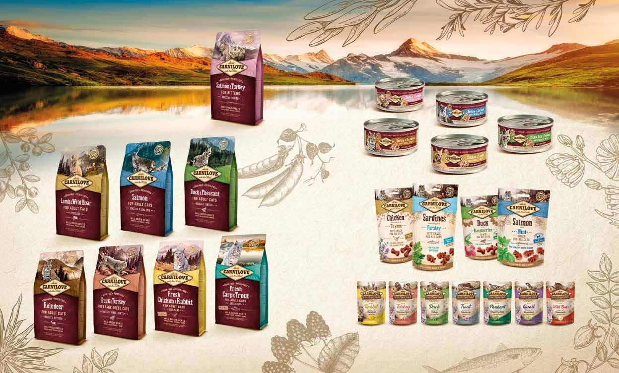 Η Carnilove έχει σχεδιαστεί με σεβασμό στις φυσικές διατροφικές συνήθειες της γάτας. Σύνθεση χωρίς δημητριακά ,πλούσια σε κρέας άγριας προέλευσης όπως σολομός,γαλοπούλα,πάπια,φασιανός, αρνί, τάρανδος και αγριόχοιρος καθώς και νέες συνθέσεις με φρέσκο κρέας κυπρίνου,πέστροφας,κουνελιού και κοτόπουλου σε συνδυασμό με φρούτα του δάσους και βότανα. Η Carnilove Cat παρέχει όλες τις απαραίτητες πρωτεΐνες, λίπη, βιταμίνες και φυσικά αντιοξειδωτικά που συμβάλλουν θετικά στην καλή φυσική καταστάση του οργανισμού και στην ενίσχυση του ανοσοποιητικού συστήματος. Carnilove "Η γάτα ήταν και θα είναι πάντα μία ανεξάρτητη οντότητα η οποία γνωρίζει πραγματικά πώς να εκτιμάει την ανθρώπινη φροντίδα. Με σεβασμό στο αρχέγονο ένστικτο για κρέας και τον απαιτητικό χαρακτήρα της γάτας, αναζητούμε τα καλύτερα συστατικά της φύσης με σκοπό την υγεία και την ευεξία."