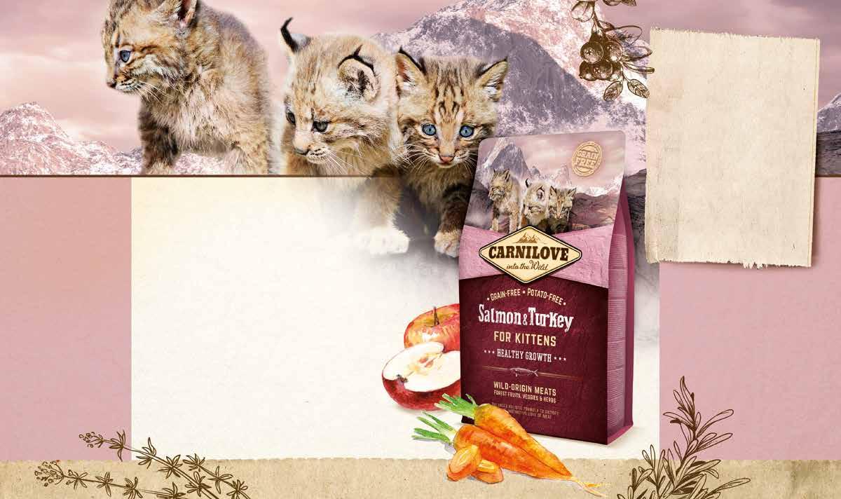 Salmon & Turkey Για τα γατάκια, είναι κρίσιμης σημασίας να επιλέξετε μια τροφή πλούσια σε πρωτεΐνες, λίπος, βιταμίνες και απαραίτητα θρεπτικά συστατικά για μια υγιή και άριστη σωματική ανάπτυξη. Η τροφή Carnilove Salmon & Turkey για γατάκια