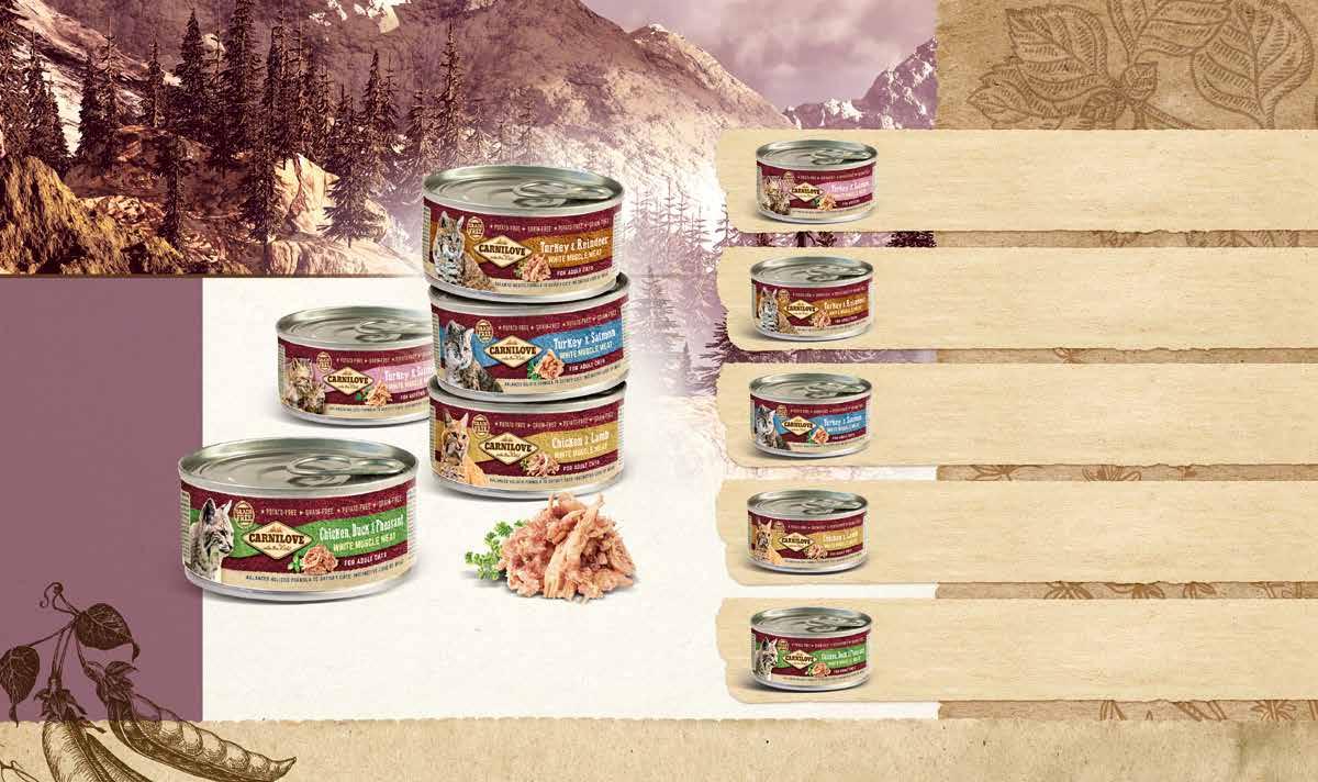 Οι γάτες είναι σαρκοφάγα αρπακτικά και ο τρόπος ζωής τους καθορίζεται από ένα ισχυρό ένστικτο κυνηγού. Η σειρά Carnilove FRESH MEAT έχει δημιουργηθεί με σεβασμό στις φυσικές διατροφικές ανάγκες των γατών και πλησιάζει ακόμα περισσότερο στη φυσική μορφή διατροφής τους. ΚΡΕΑΣ ΑΓΡΙΑΣ ΠΡΟΕΛΕΥΣΗΣ 80 % ΦΡΟΥΤΑ ΤΟΥ ΔΑΣΟΥΣ, ΛΑΧΑΝΙΚΑ & ΒΟΤΑΝΑ 20% Fresh Meat ΧΩΡΙΣ∆ΗΜΗΤΡΙΑΚ Α ΧΩΡΙΣ ΠΑΤΑΤΑ Fresh Meat ΣΥΝΘΕΣΗ ΜΕ ΣΕΒΑΣΜΟ ΣΤΗ ΦΥΣΙΚΗ ΠΡΟΕΛΕΥΣΗ