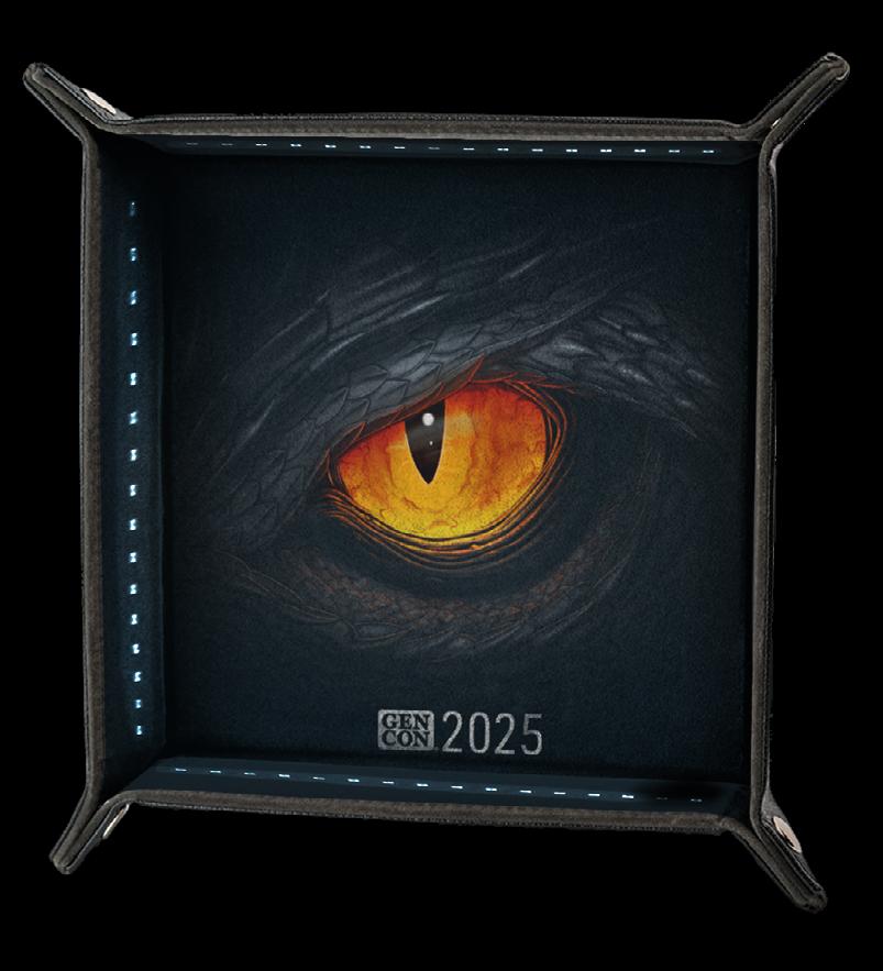 Remember your visit to Gen Con with a 2025 fold-down dice tray with black lights embedded to show off your dice! Folds down for easy storage and works with our free mini dice set with each purchase. Protect your dice and your table in style!