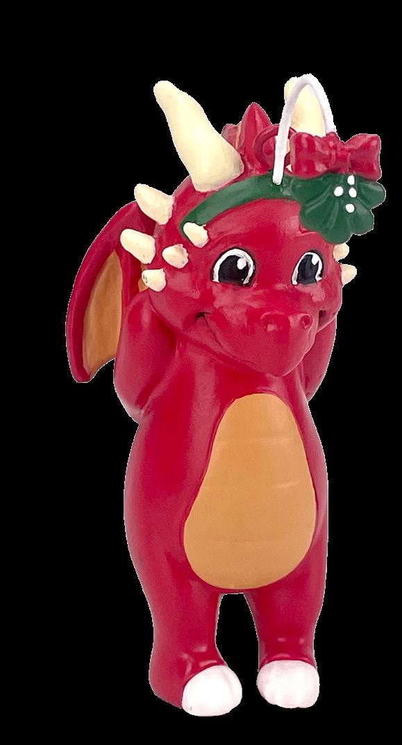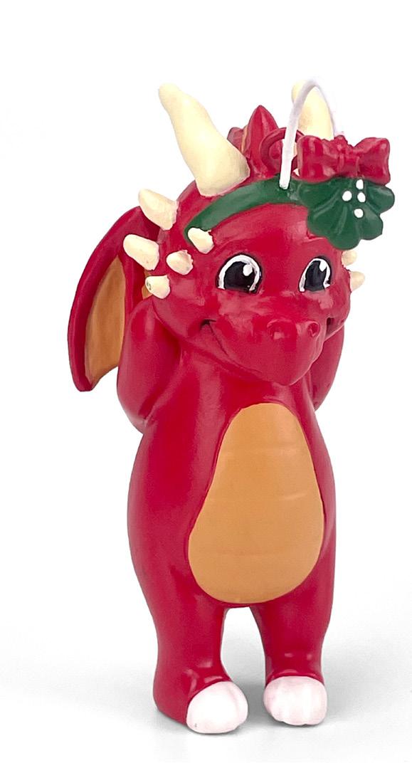 For 2025, Baby Genny is bringing her own mistletoe and hoping for a sweet smooch under the Christmas tree. The ornament is 3” tall, made from hand-painted resin.