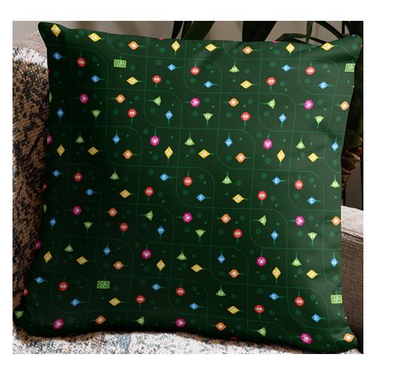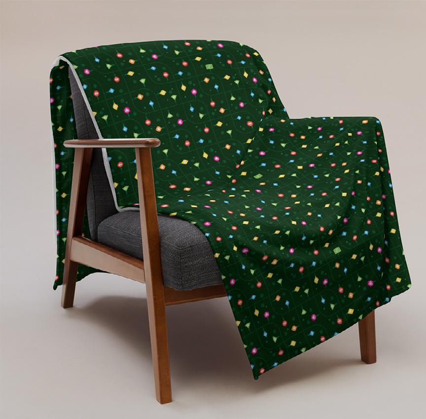 Inspired by festive string lights and the sacred geometry of dice, this design is a celebration of color, comfort, and chaotic good vibes. Toss it on your couch, throne, or DM chair and let the snuggles begin.