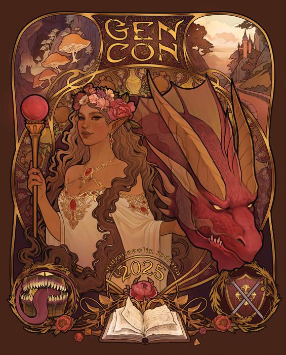 Back for a limited time, this exclusive collectible print is available to purchase from the celebrated 2025 Gen Con program cover artist, Megan Lara! Each print is signed by the artist, and features exclusive gold foil accents. Get yours now before they sell out!