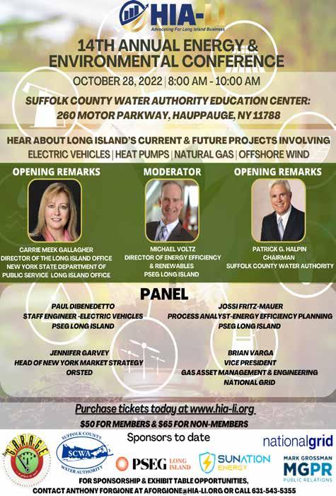 HIA-LI’s 14th Annual Energy & Environmental Conference Tickets: $50 - HIA-LI Members $65 - Non-members