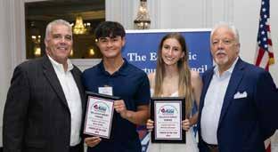 High School seniors Ryan Budke and Melissa O’Connor are pictured with Butch Dellecave Foundation President Mark Dellecave (left) and Executive Director Guy Dellecave (right). They were honored at the 24th Annual Dellecave Awards, recognizing athletic prowess, scholarship, and community service. The award organizers were EOC of Suffolk, the Dellecave Foundation, and Newsday.