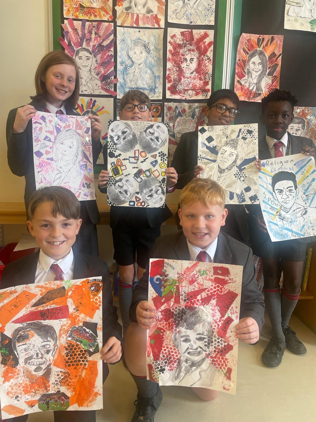 Just before the Easter break, Year 6 put the final additions on their self-portraits. Using various media, the children have created personal portraits to show aspects of their self.Don’t they look fantastic?