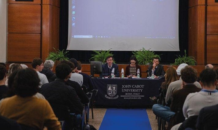 On March 26, 2025, John Cabot University hosted the Presidential Lecture “The First 100 Days of Trump’s Presidency.” The event was co-organized by the Guarini Institute for Public Affairs, the Frank J. Guarini School of Business and the Institute of Future and Innovation Studies. The lecture delved into one of the most pivotal