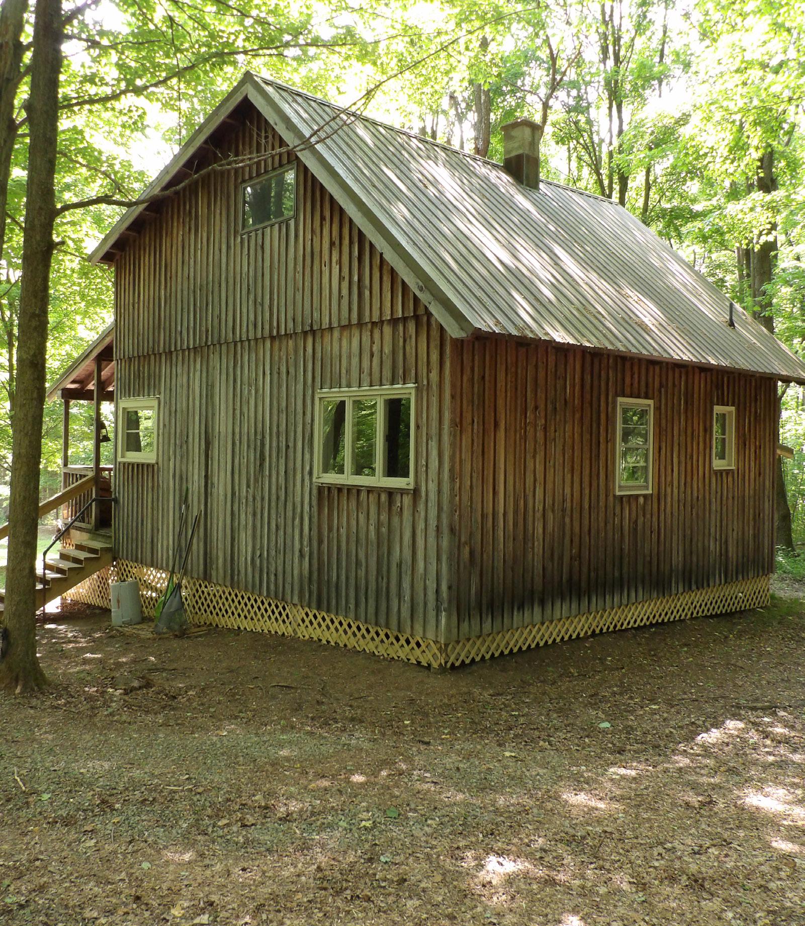 • Log cabin with detached garage with built in game cooler, all connected to power grid