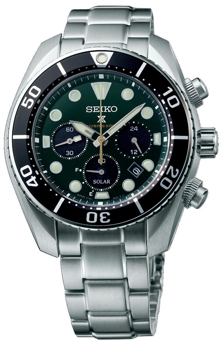 A három, sötétzöld számlapos modell – a számlapot kristálytiszta zafírüvegen keresztül szemlélhetjük – ugyanilyen színű, kiegészítő szilikonszíjjal is kapható. Az SPB207J1, valamint az SSC807J1 típusok akár 200 méterig vízállók, az SLA047 pedig 300 méteres szaturációs merüléshez is alkalmas.