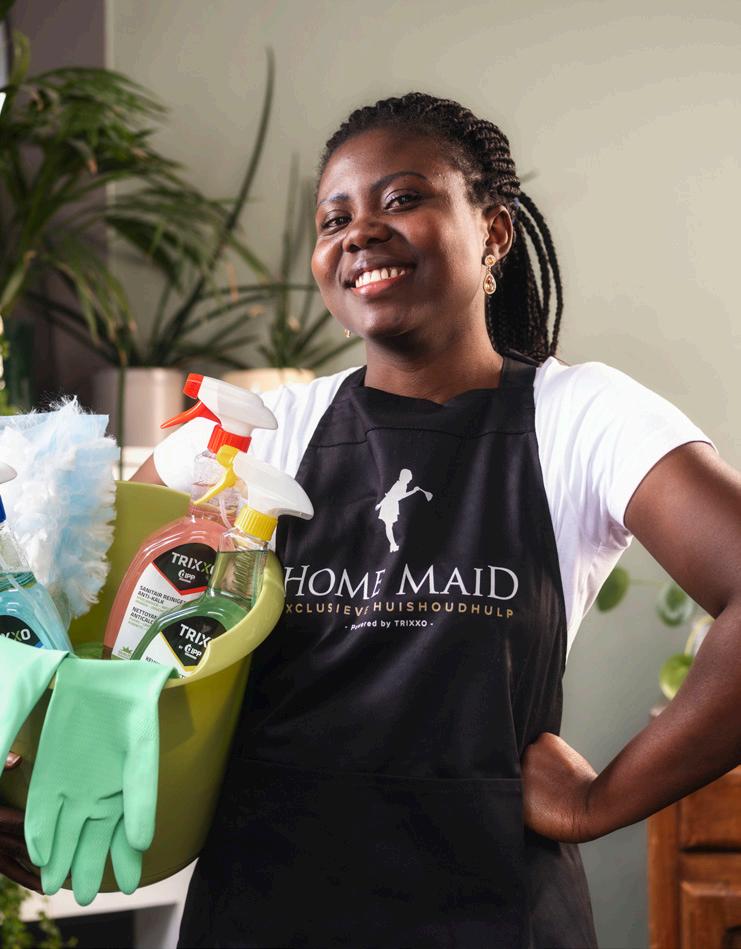 Angélique : Home Maid a été créée il y 13 ans. TRIXXO a pris les commandes en 2016. Et nous avons conservé la marque Home Maid. Notre agence de titres-services haut de gamme est présente dans toute la Flandre avec, à ce jour, 940 familles clientes et 353 aides-ménagères en service.