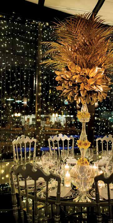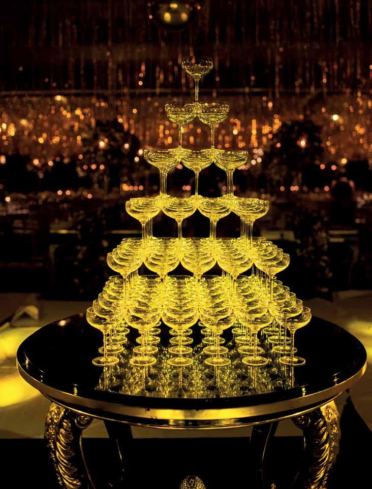 Referência àquela época, uma torre de taças de espumante foi montada no meio do salão para o tradicional brinde