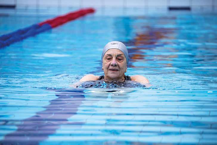 EXERCÍCIO É PRIMORDIAL PARA A NOSSA SAÚDE E EU ESTOU COMPROMETIDA COMIGO MESMA. ME ACOSTUMEI A TER HORÁRIO, ENTÃO LEVANTO CEDO, VENHO PARA O CLUBE, FAÇO ACADEMIA E NAS TERÇAS E QUINTAS AINDA FAÇO WATER RUNNING. PARA COMPLETAR, ENCONTRO AS MINHAS AMIGAS, CONVIVO, CONVERSO, ME MOVIMENTO E TUDO ISSO ME FAZ MUITO BEM!”