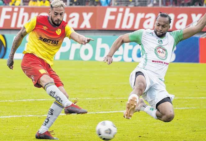 Aucas empató 0-0 con Mushuc Runa y si bien se mantuvo como líder de la segunda fase de la LigaPro, el Indepen diente quedó cerca de alcanzarlo y con la intención de arrebatarle el cupo a la final por el título de 2022. Mien tras Aucas se quedó con 27 puntos, la U. Católica sumó 24 unidades al solo poder sa car un empate en su visita al Cumbayá FC. La ‘Chatoleí’ es otro de los escoltas que gene ran nervios en Aucas. El equipo de Farías creó varias ocasiones, pero el balón no pudo romper el arco contrario tras sendos remates de Vega, Can