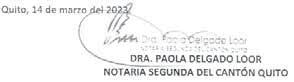 ROMKENS Y OLGA RAQUEL SALTOS SALTOS, otorgada ante la Dra. Paola Delgado Loor, Notaria Segunda del cantón Quito, el diecinueve de abril del 2017, por el término de veinte (20) días a contarse desde la fecha de la publicación de este extracto, a fin de que las personas que eventualmente tuvieren interés en esta liquidación puedan presentar su oposición fundamentada, dentro del referido término.
