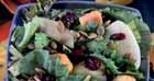 Las ensaladas de tomate, pepino y cebolla roja en escabeche bañada con vinagreta.