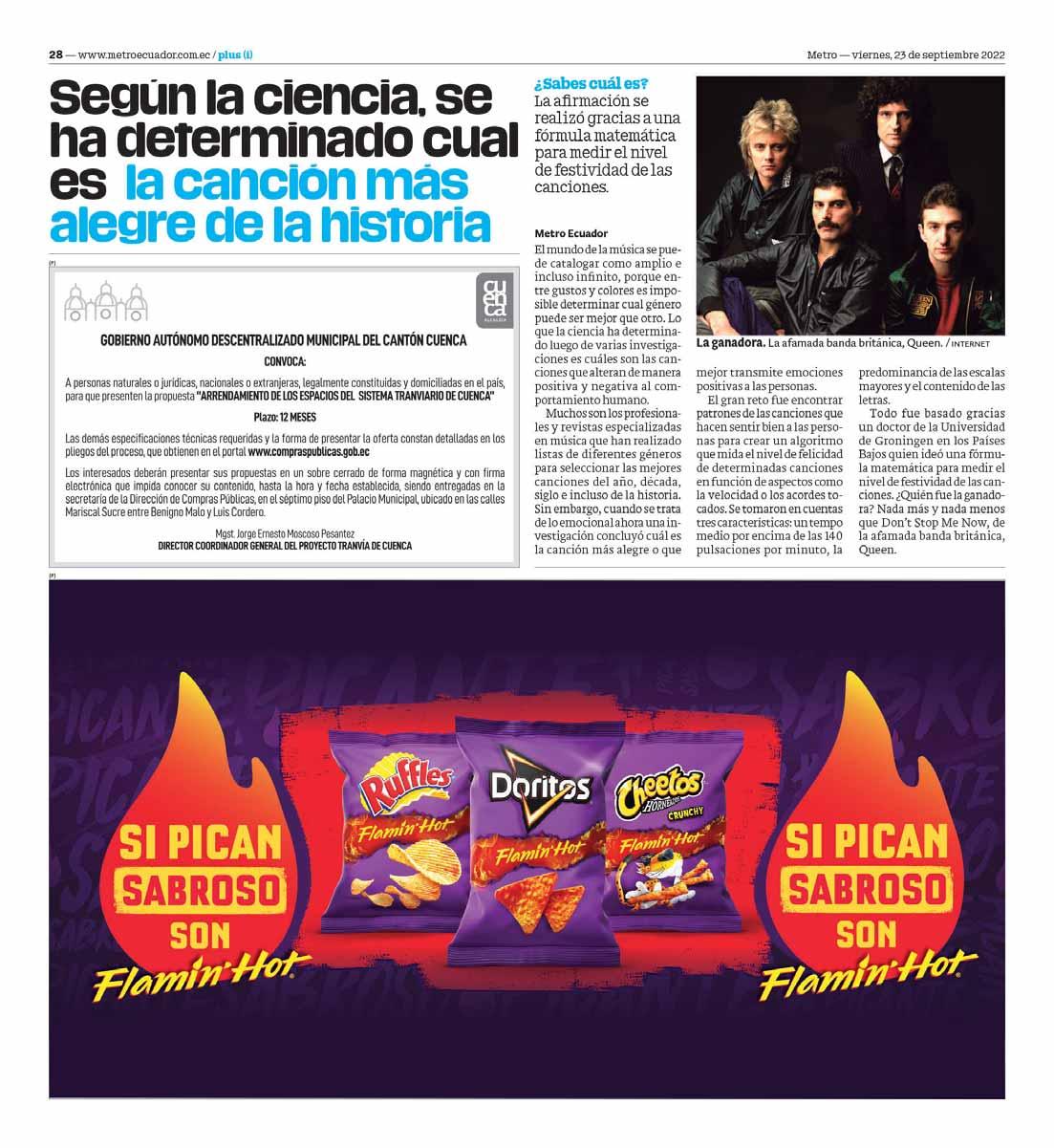 • Redacción Cuenca: Adela Araujo, adela.araujo@metroecuador.com.ec • Jefe Nacional de Arte y Diseño: Christian Carrión, christian.carrion@metroecuador.com.ec