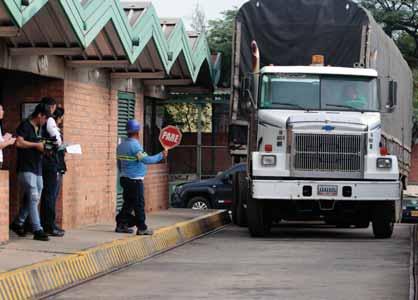 Paso. Camiones de Colombia y Venezuela cruzan al lado contrario para poder vender sus productos.