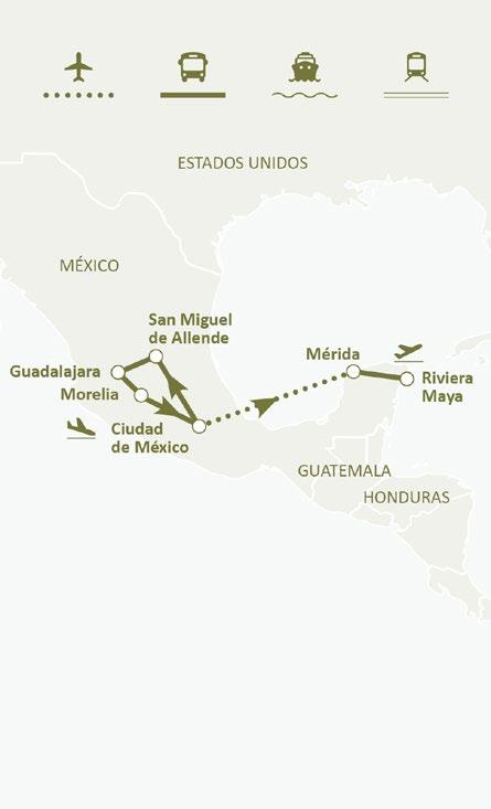 por sus principales atractivos: el elegante Paseo de Montejo, el Monumento a la Patria, la Plaza Principal con la imponente Catedral de San Ildefonso, y los Palacios de Gobierno. La tarde es perfecta para pasear por los mercados locales y adquirir artesanías típicas como bordados o guayaberas.