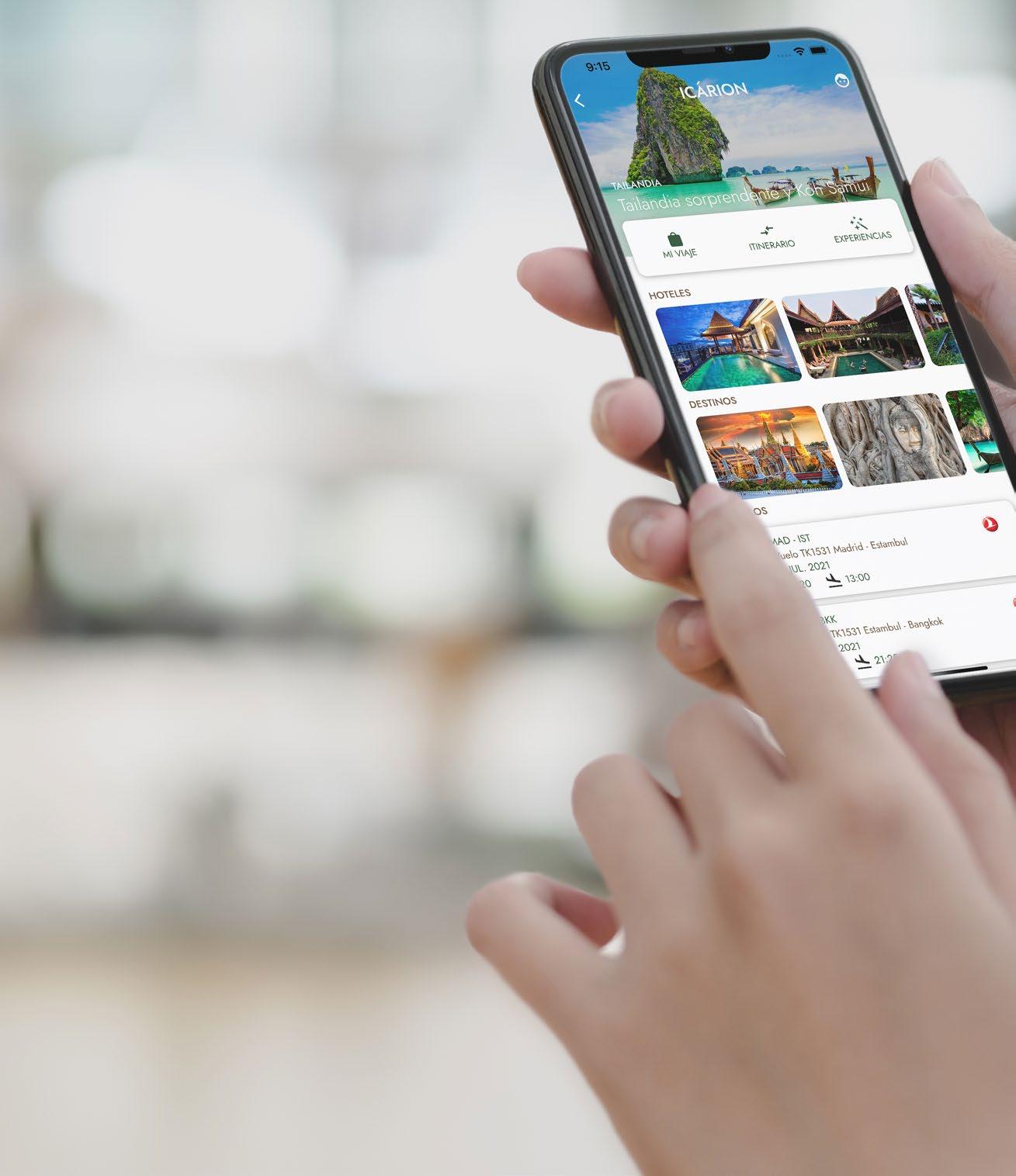 La App Icárion pone en valor dos de nuestros pilares más importantes: sostenibilidad y digitalización. Esta App alojará toda la documentación del viaje, sustituyendo al tradicional modelo físico de bolsas de plástico y documentos en papel, ofreciendo además información mucho más actualizada y en tiempo real al tiempo que permite a nuestros viajeros estar siempre conectados con todos los prestatarios de servicios.