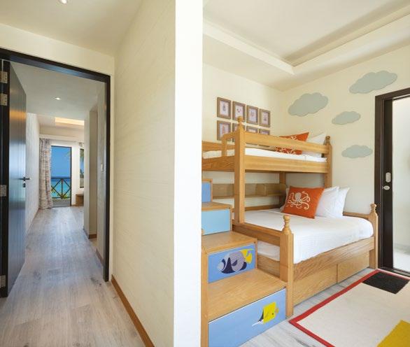 129 habitaciones en una combinación de alojamiento sobre el agua y playa en 10 categorías diferentes.