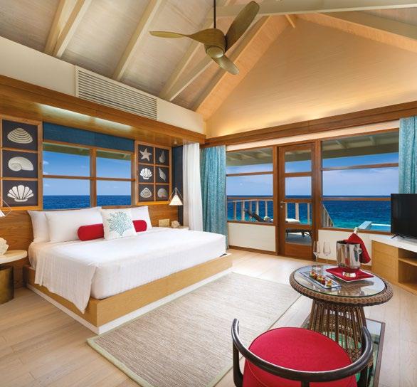 · Biólogo marino en el lugar + equipo de snorkel de cortesía. Spa Velassaru con 10 salas de tratamiento sobre el agua.