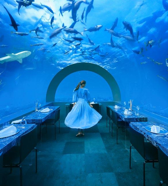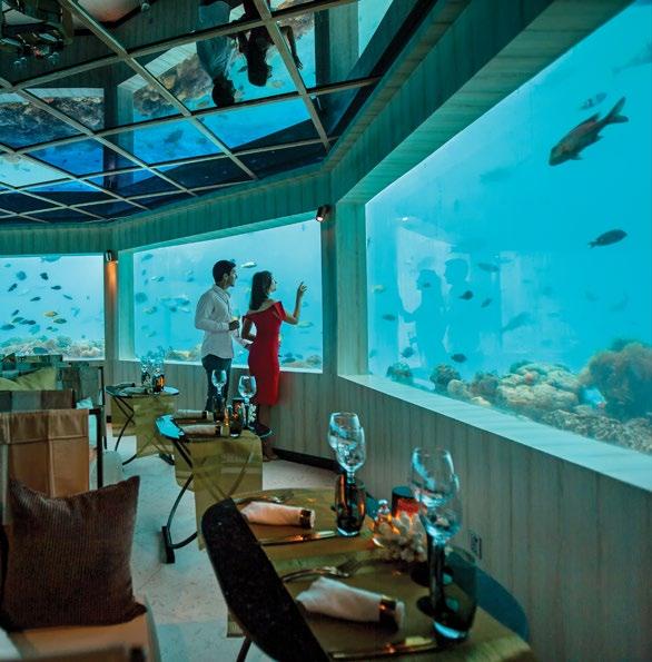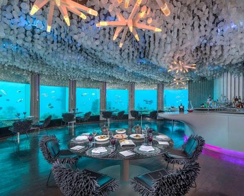 Mímate con un masaje subacuático en el icónico Huvafen Spa, una experiencia única en la vida. Cata de vinos y quesos con el sommelier residente en Vinum, la bodega subterránea.