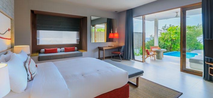 Escondidas entre la vegetación, las hab. Beach Villa son una opción que emana un estilo local, mientras te encuentras a solo unos pasos de la playa. Las hab. Two Bedroom Beach House tienen dos plantas, ideal para familias o amigos que viajan juntos. El escondite para parejas, son la Water Villa with Pool, cuentan con una piscina privada con unas vistas increíbles del Océano Índico.